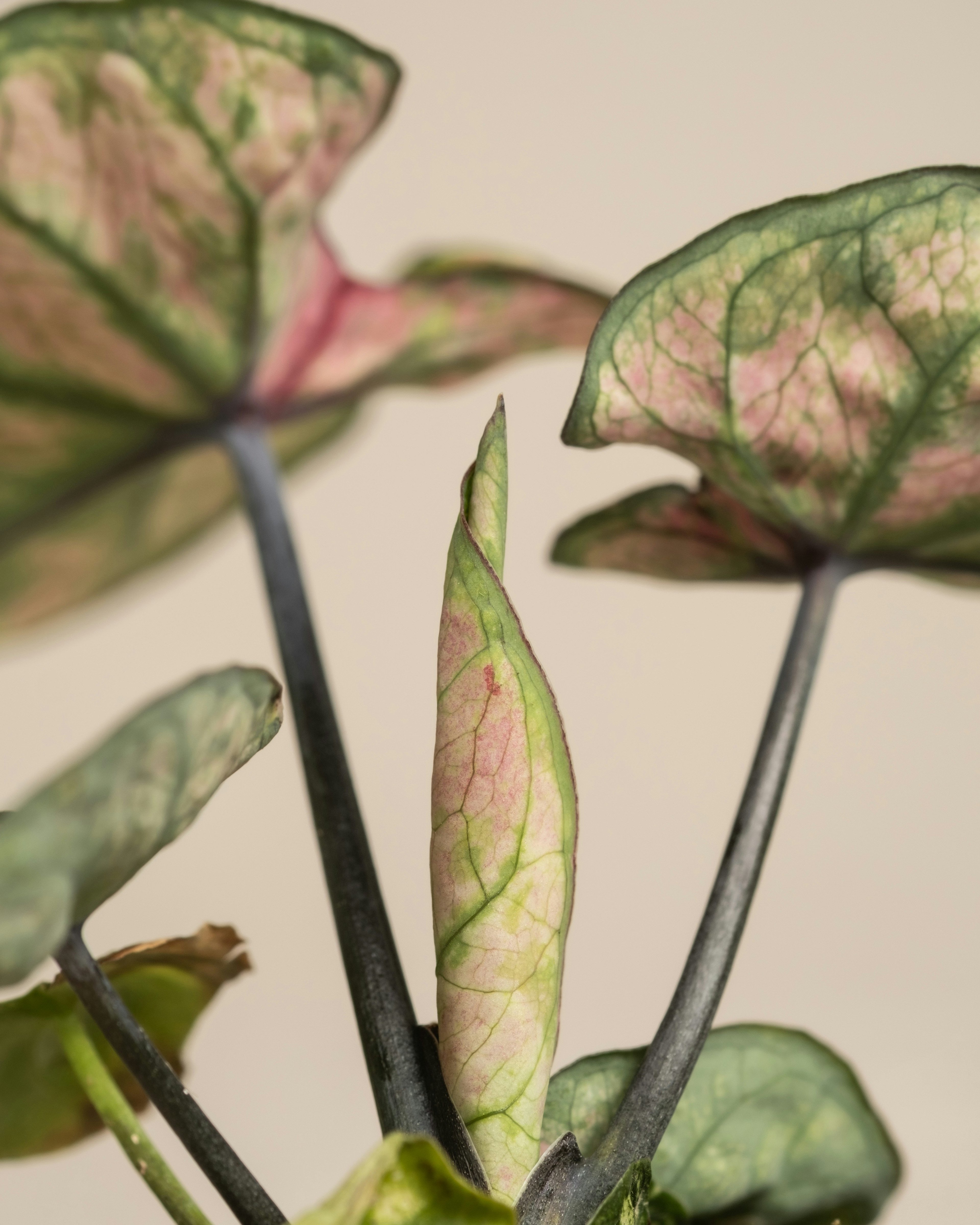 Add a splash of color to your space with the eye-catching Caladium (Caladium bicolor), also known as Angel Wings or Elephant Ears. This tropical beauty is prized for its striking, heart-shaped leaves in shades of green, white, pink, and red. Perfect for brightening up any indoor setting, the Caladium brings a lively, artistic touch to your home or office.